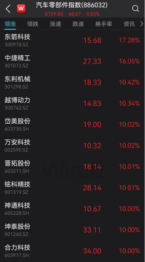 汽车零部件板块再掀涨停潮