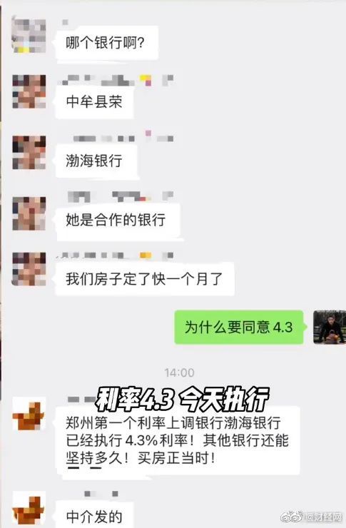 2月22日,市场消息称,“郑州首套房贷利率上调。渤海银行郑州方面证实,目前已经接到通知,首套房贷款利率已开始执行利率4.3%。”