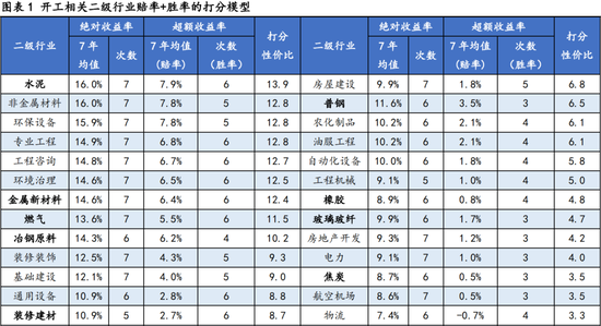 ①大部分二级行业在开工行情期间,取得正收益甚至超额收益率与其本身的景气边际变化无关,包括水泥、金属新材料、燃气、装修建材、航运港口、塑料、橡胶、玻璃玻纤、焦炭等行业。其中如水泥行业在过去7年开工行情期间,其价格指数基本均处于下行区间,但仍能每年取得不错的正收益率和7年中6年取得超额收益率;如金属新材料行业在过去7年开工行情期间,景气抬升和下行均有发生,但仍是每年都有正收益和6次取得超额收益;如燃气行业7年开工行情期间有5年景气处于回落状态,但仍是每年都取得了正收益且6次取得超额收益;如航运港口行业景气通常在年初1季度处于淡季,过去7年开工行情期间景气均出现不同程度回落,但每年也都取得正收益和5年超额收益。需注意的是开工行情表现与景气边际变化无关的行业需优先选择性价比高的行业,因为其代表着更高的赔率和胜率。某些行业尽管其开工行情表现与景气无关,但由于其性价比低因此选择意义较小,如橡胶行业在过去7年开工行情期间有6次取得了正收益,取得正收益涵盖了景气改善、景气平稳、景气波动、景气回落的各种情形,意味着橡胶行业取得正收益的概率极大并与景气边际变化无关,但其取得超额收益的概率较低,7年中仅4次取得超额收益,因此性价比低。