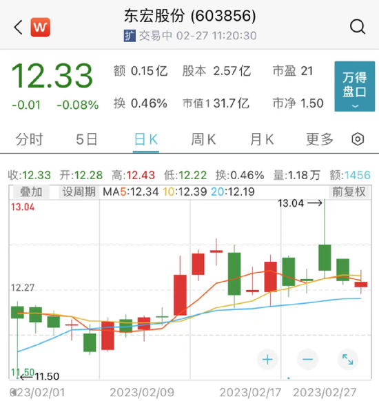股价方面,东宏股份今年以来股价涨超6%,目前总市值31.7亿元。