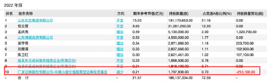 近日,东宏股份发布2022年年报显示,由丘栋荣管理的中庚小盘价值在去年四季度减持东宏股份25.31万股,截至去年四季度末,该基金持有东宏股份179.78万股,位列其第十大流通股东。