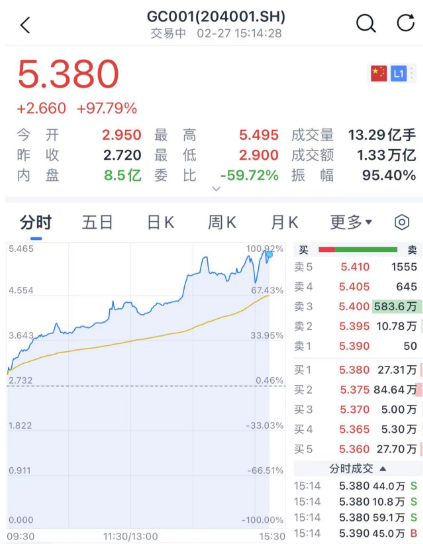第一、2月月底了,市场资金偏紧张,国债逆回购最高摸到了5%,交易所逆回购利率大幅攀升。上交所GC001触及5.4%,深交所R-001利率触及5.33%。一定程度影响了市场。