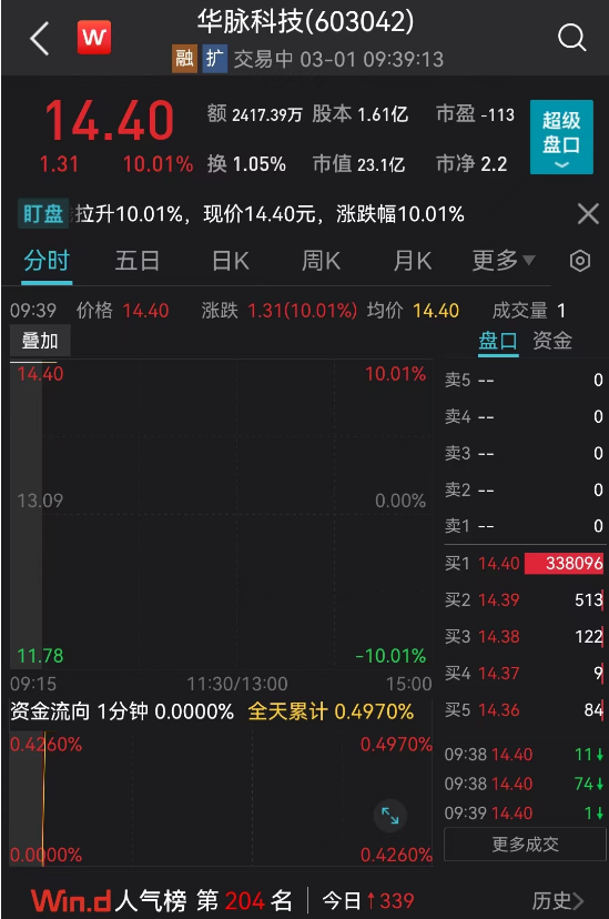 3月1日上午,近期火热的时空大数据概念威力继续,华脉科技、恒久科技连续涨停,成功实现两连板。