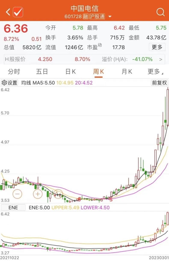 中国电信大涨近9%,中国移动涨超5%,二者股价盘中均刷新历史新高。