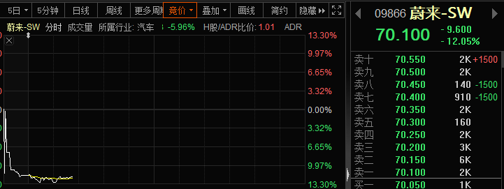 今天早盘,蔚来汽车在港股市场的股价突然崩跌。最大跌幅一度超过12%。