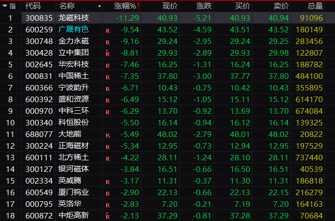 今天早盘,稀土永磁板块全线杀跌。