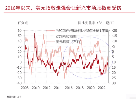 因为新兴市场也属于全球股市里弹性比较大的市场,美元走强实际上意味着资金从全球市场向美国的回流,尤其是从新兴市场向美国回流。