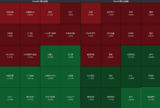 板块方面,中字头个股表现强势,航天军工板块盘中走强;ChatGPT概念股走低,AIGC、人工智能、软件等方向跌幅居前。