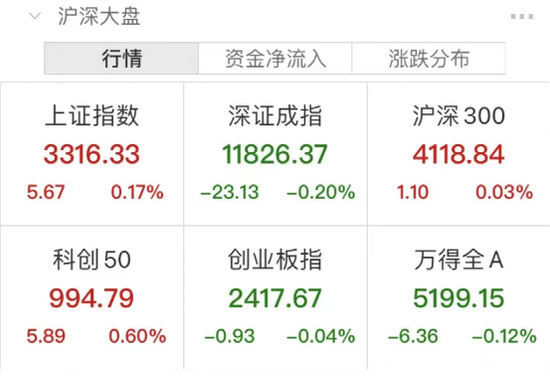 一起来看看上午市场情况。三大指数盘中走低,截至午间收盘,上证指数盘中翻红。沪指涨0.17%,深成指跌0.2%,创业板指跌0.04%。两市下跌个股超3100只。