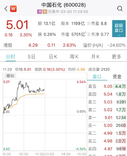 三桶油集体拉盘,中国石化升超3%,中国石油、中国海油涨约2%。