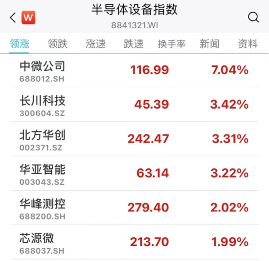半导体板块开盘直线拉升,中微公司一度逼近涨停,长川科技、北方华创、华亚智能等跟涨。