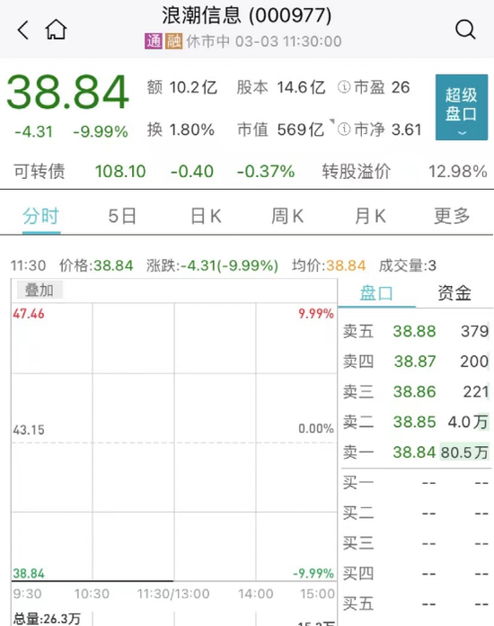 受消息影响,浪潮信息今日开盘一字跌停。截至发稿,80.5万手封死跌停,成交金额10.2亿元。