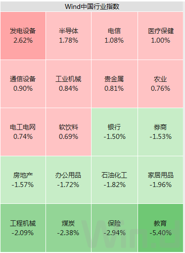 3月6日,本周一市场波动不大,沪深两市股指以微幅下跌0.19%和0.08%报收。Wind行业方面,涨幅靠前的主要是发电设备、半导体、电信和医疗,涨幅均超过1%,而跌幅较大为保险、煤炭、工程机械、银行、券商等一些蓝筹股。