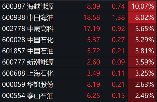 在“三桶油”的带领下,海越能源、新潮能源(维权)、泰山石油等股纷纷走强。