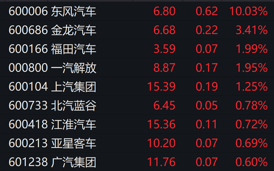 3月7日早间,汽车整车板块盘中异动拉升,东风汽车涨停,金龙汽车、福田汽车、江淮汽车、中集车辆等快速跟涨。、