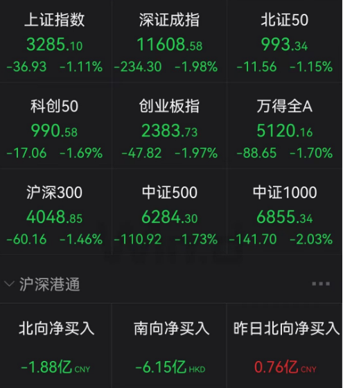 3月7日,A股早盘低开后逐步震荡走高,午后回落,三大指数均跌逾1%。截至收盘,沪指跌1.11%,深证成指跌1.98%,创业板指跌1.97%。北向资金全天净卖出1.88亿元,其中沪股通净买入17.14亿元,深股通净卖出19.02亿元。