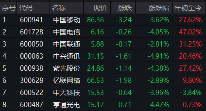 此前连续火热的电信板块今日回调,6G、电信设备等细分概念重挫,三大运营商均跌逾2%。