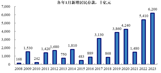 这张图反映的是每年1月份的居民存款,可以看到,去年和今年显著的超季节性因素。