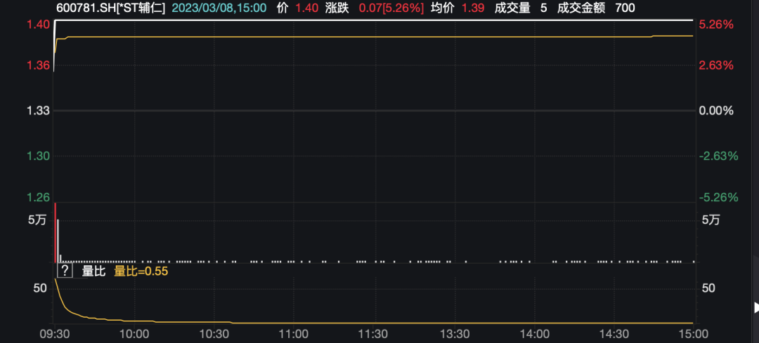 尽管再度重申“公司股票将被终止上市”,但3月8日,*ST辅仁(维权)股价还是在开盘后快速封住涨停板。这已是该公司近6个交易日来,第5次出现涨停。