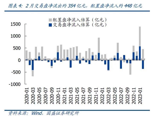实际上,今年以来,尽管A股市场整体走势较为波动,北向资金仍在持续净流入,其中,代表长线资金的配置盘已成为其中的主力资金。国盛证券在最新发布的研报中称,根据其拆解和估算,今年2月,北向资金中的交易盘转为流出,但配置盘资金延续此前增持态势,单月净流入约447.63亿元。