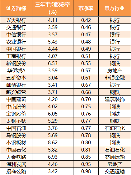 数据显示,截至3月7日,共有22家央企处于破净状态且三年平均股息率超过3%,主要集中在银行、钢铁、石油石化等行业。