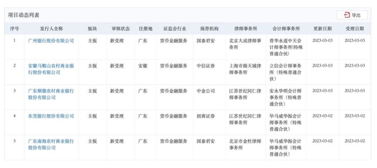 在全面注册制实施前,A股共有11家银行在排队IPO,截至3月9日发稿,已有10家银行完成了主板IPO平移工作。这10家银行中,湖州银行、亳州药都农商行、湖北银行、江苏海安农商行、江苏昆山农商行拟在上交所主板上市,审核状态均为“已受理”;广州银行、安徽马鞍山农商行、广东顺德农商行、东莞银行、广东南海农商行拟申请在深交所挂牌上市,审核状态均为“新受理”。