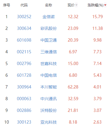 6G概念也持续走强,中国卫通涨停,金信诺、三维通信、世嘉科技等涨幅居前。