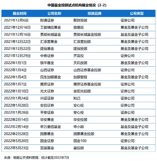 报告统计显示,自2019年10月25日基金投顾试点伊始至2022 年7月,中国共有60家机构获得基金投顾试点资格,包括25家基金及基金子公司、29家证券公司、3家第三方销售机构、3家商业银行。