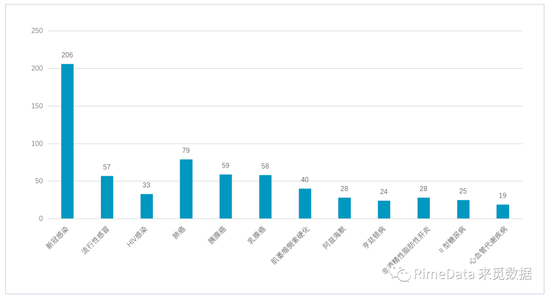 据Becon的数据显示,自新冠大流行开始以来,全球RNA疗法迎来了井喷式的发展,2021年基于寡核苷酸的新开临床管线达125个,同比2020年大幅增长。从适应症来看,目前在研的,以寡核苷酸和mRNA为代表的RNA疗法主要针对感染性疾病、肿瘤等,其中感染性疾病占比最高,主要是由于2020年开始新冠大流行使以新冠感染为适应症的药物研究大量上升。