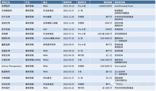近年来寡核苷酸药物的发展为许多罕见或目前无法治愈的疾病带来了治疗希望,对治病蛋白源头的精准靶向理论上可以攻克对于许多依靠小分子和抗体药物难成药的蛋白。作为目前创新疗法中的大热赛道之一,RNA疗法下的寡核苷酸在中国一级市场上的热度也在逐步上升,据来觅数据不完全统计,2022年全国在RNA药物领域合计发生融资事件31起,其中17起融资事件与寡核苷酸(小核酸)药物有关。