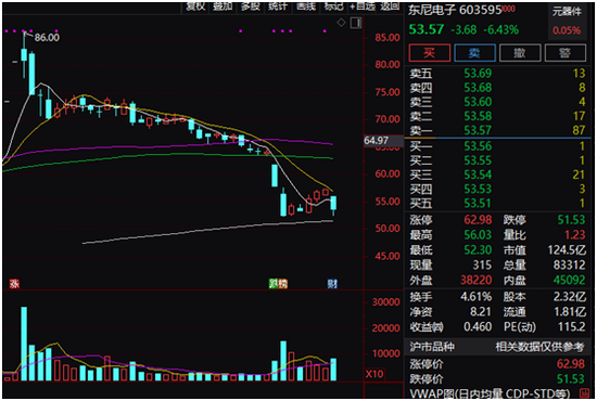 东尼电子股价大幅下挫,盘中跌幅一度超过8%,收盘仍跌6.43%。