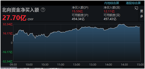 北向资金今天重拾净买入,全天净买入近28亿元。