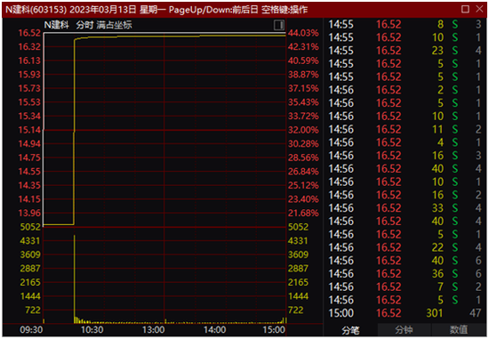 沪市主板新股上海建科股价上涨44.03%,达到上市首日涨幅上限。