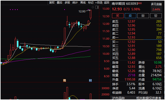 南华期货涨幅一度接近6%。