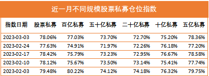 私募排排网3月13日发布的一份数据显示,截至3月3日(因信息披露合规等原因,私募基金净值及仓位测算数据相对滞后),国内股票私募机构平均股票仓位为78.06%,环比前一周上升0.43个百分点,继续保持在接近8成的绝对高位。