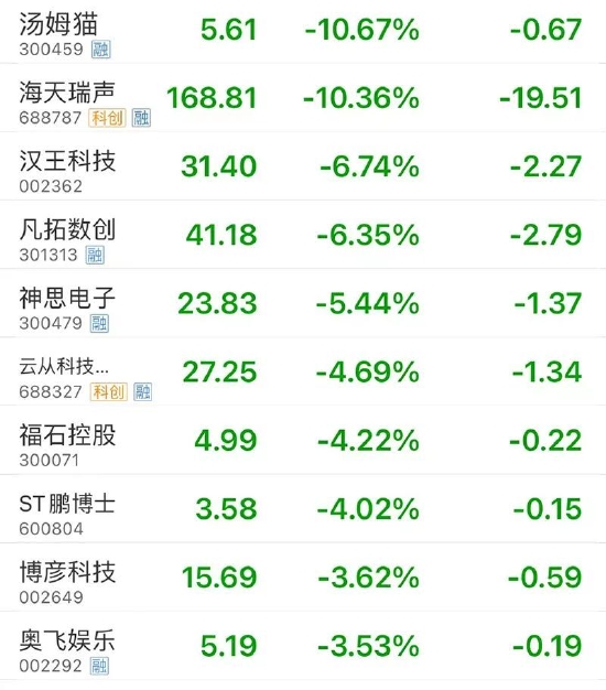 今日,ChatGPT概念股尾盘大幅跳水,汤姆猫一度跌超14%。截至收盘,汤姆猫、海天瑞声跌超10%,汉王科技、初灵信息、视觉中国、赛为智能(维权)、云从科技等跌幅居前。