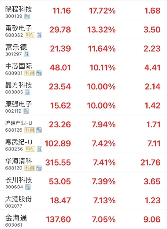 个股方面,超导概念股法尔胜尾盘惊现“地天板”,最终录得4连板;比亚迪紧急回应有关特斯拉叫停与之在电池上合作的报道:消息不实;中芯国际收涨10.11%,股价创近一年新高,半导体板块多只个股涨超10%。