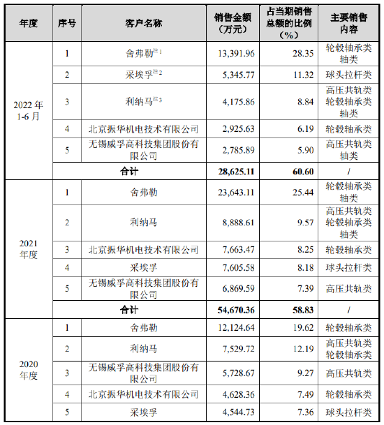 报告期各期,三联锻造向前五大客户销售额占当期营业收入的比例分别为56.60%、55.93%、58.83%和60.60%,客户集中度较高。
