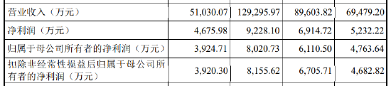 报告期内,公司营业收入分别为69,479.20万元、89,603.82万元、129,295.97万元、51,030.07万元,扣非归母净利润分别为4,682.82万元、6,705.71万元、8,155.62万元、3,920.30万元。