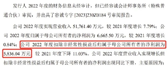 公司2022年度实现营业收入51,761.40万元,较2021年度增长7.79%;公司2022年度归属于母公司所有者的净利润为6,665.50万元,较2021年度增长0.84%;公司2022年度扣除非经常性损益后归属于母公司所有者的净利润为5,836.04万元,较2021年度下降11.03%。