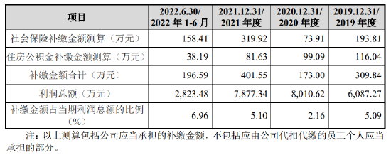 根据公司测算,公司应缴未缴的社会保险、住房公积金金额及占当期利润总额的比例如下: