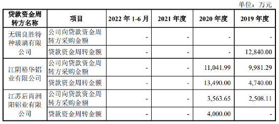 报告期内,发行人存在通过关联方供应商无锡良胜特种玻璃有限公司以及非关联方供应商江阴裕华铝业有限公司、江苏后肖洲阳铝业有限公司取得银行贷款,周转后的银行贷款均用于支付货款、购买设备等生产经营用途。报告期各期,发行人向主要贷款资金周转供应商采购金额,以及资金周转金额对比情况如下: