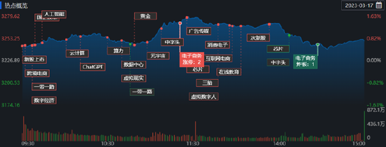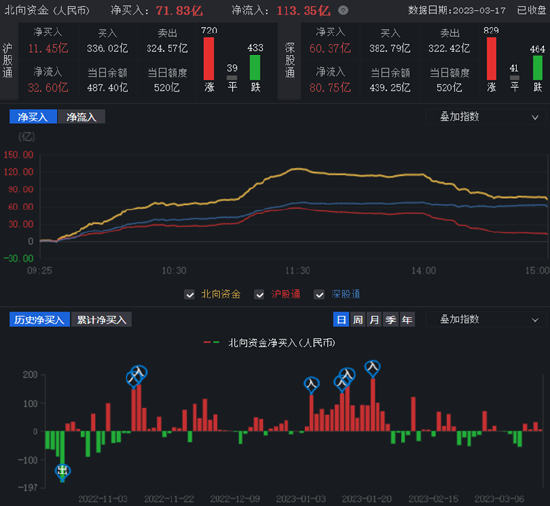 3月17日,沪深两市三大指数震荡分化,沪指日K线走出长上影的仙人指路形态,深证成指则连续两天收盘处于半年线之下。截至收盘,上证指数涨0.73%报3250.55点;深证成指涨0.36%报11278.05点,创业板指跌0.36%报2293.67点,A股合计成交额9734.32亿元,较前一交易日增长15.14%,北向资金净买入71.83亿元,沪股通净买入11.45亿元,深股通净买入60.37亿元。总体上看,A股中涨多跌少,有3220只上涨,1696只下跌。