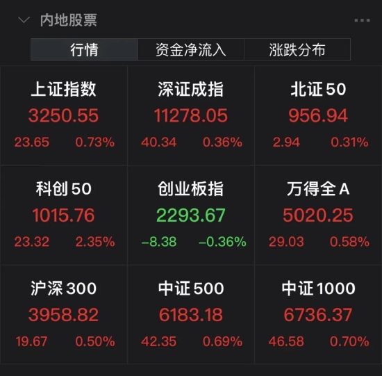 3月17日,A股指数走势分化。沪指高开高走,收涨0.73%;深证成指涨0.36%。创业板指较为弱势,收跌0.36%。
