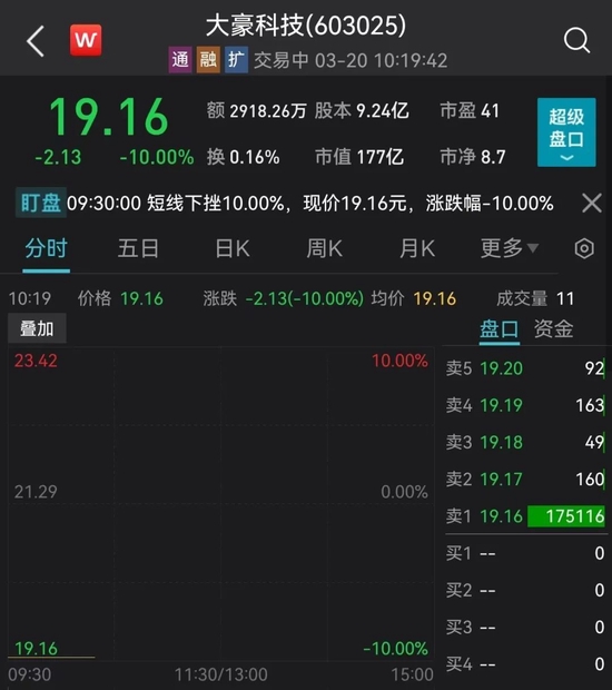 消息面上,大豪科技3月18日公告称,终止定增募资事项,此前拟向大股东、机构投资者定增募资不超119.54亿元,发行数量为18.06亿股,增发价格为6.62元/股。