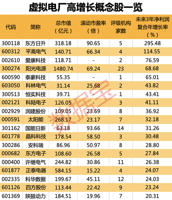 根据多家机构一致预测,东方日升、平高电气、爱康科技等19股净利润有望高增长,其中东方日升、平高电气未来3年净利润复合年增长率有望超295%和114%。