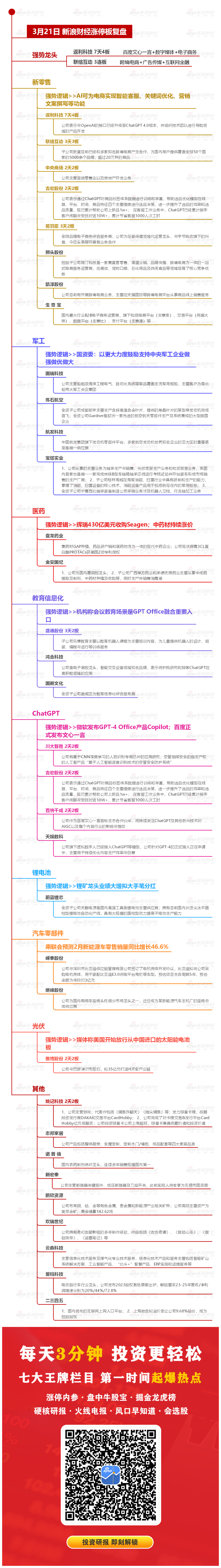 【3月21日沪深两市涨停分析】创业板指涨近2%,新能源板块午后拉升。ChatGPT概念