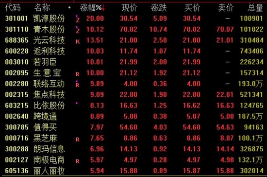 电商概念盘中强势拉升,截至收盘,凯淳股份“20cm”涨停,青木股份涨超18%,光云科技涨13.51%,返利科技、生意宝、若羽臣、联络互动等涨停,值得买涨约8%。