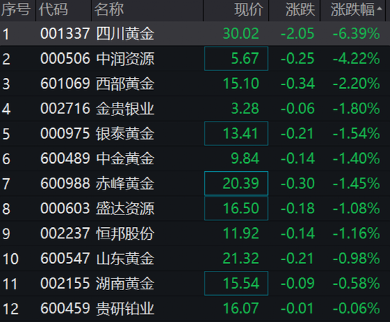 中润资源(维权)、西部黄金、金贵银业(维权)、赤峰黄金、盛达资源(维权)等近期热门股,跌幅均居于前列。