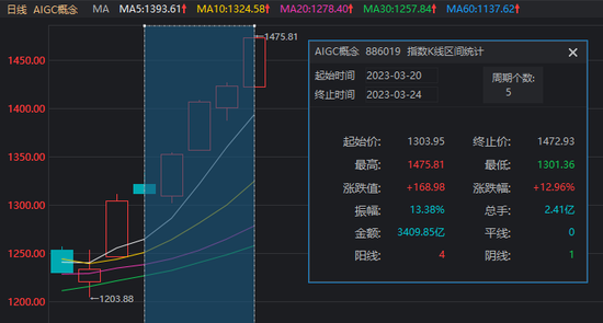 ChatGPT概念,或者说AIGC概念的走强,不是一天两天,而是一周都在高歌猛进。举个例子,如果你周一在任何一个价位买入了昆仑万维,一动不动持有到周五收盘,收益率已经接近50%了。